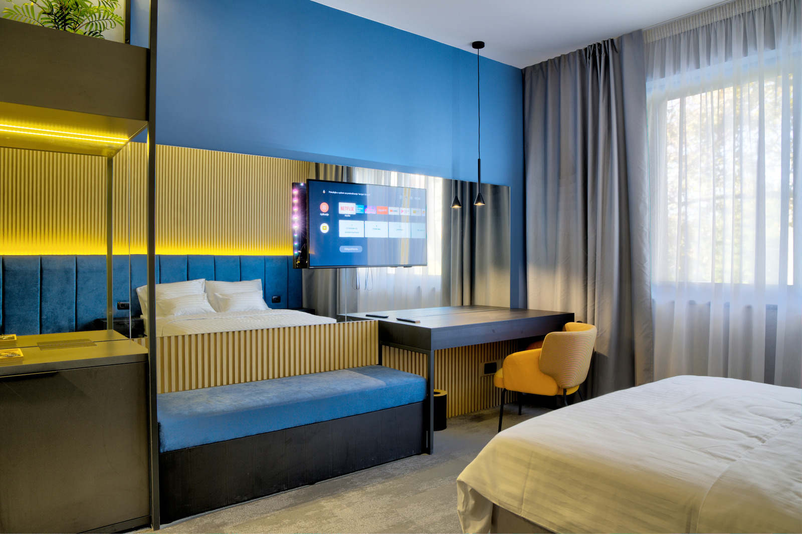 Posjetitelji ovog hotela mogu uživati u prostranim i svijetlim sobama. Tapecirane i drvene obloge zidova, udobni kreveti i sofe vrhunske kvalitete čine ovaj interijer posebnim.
