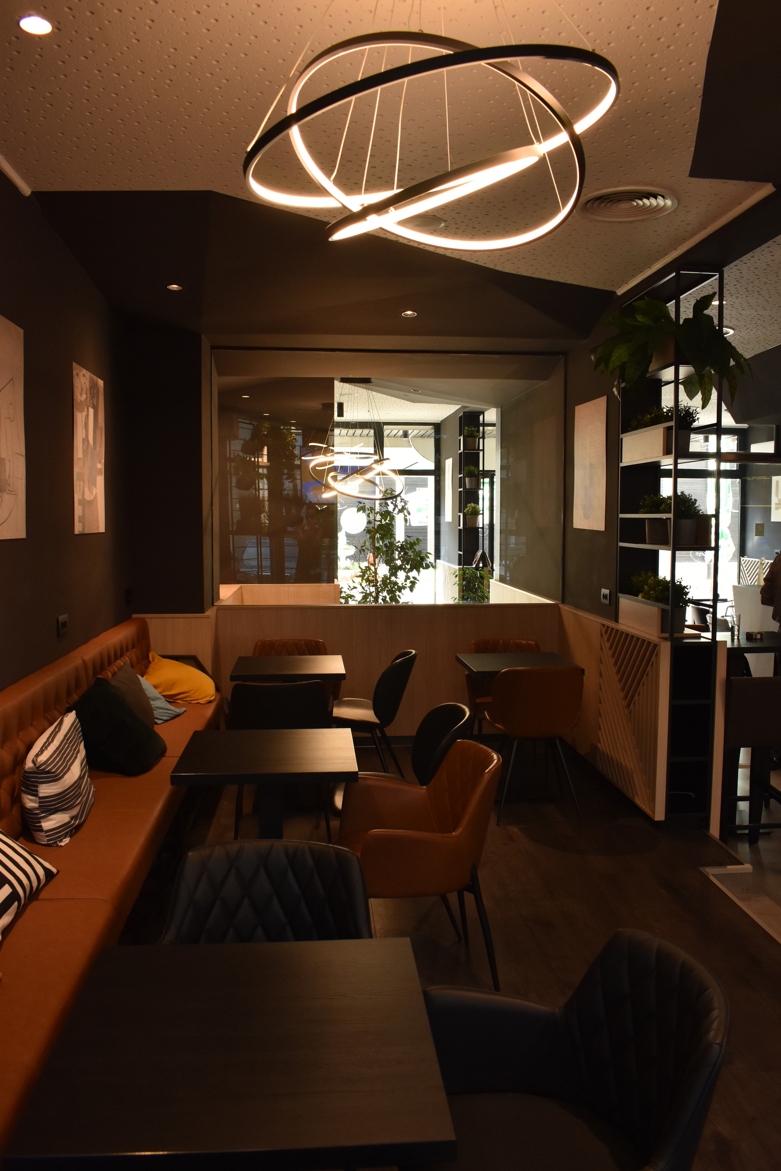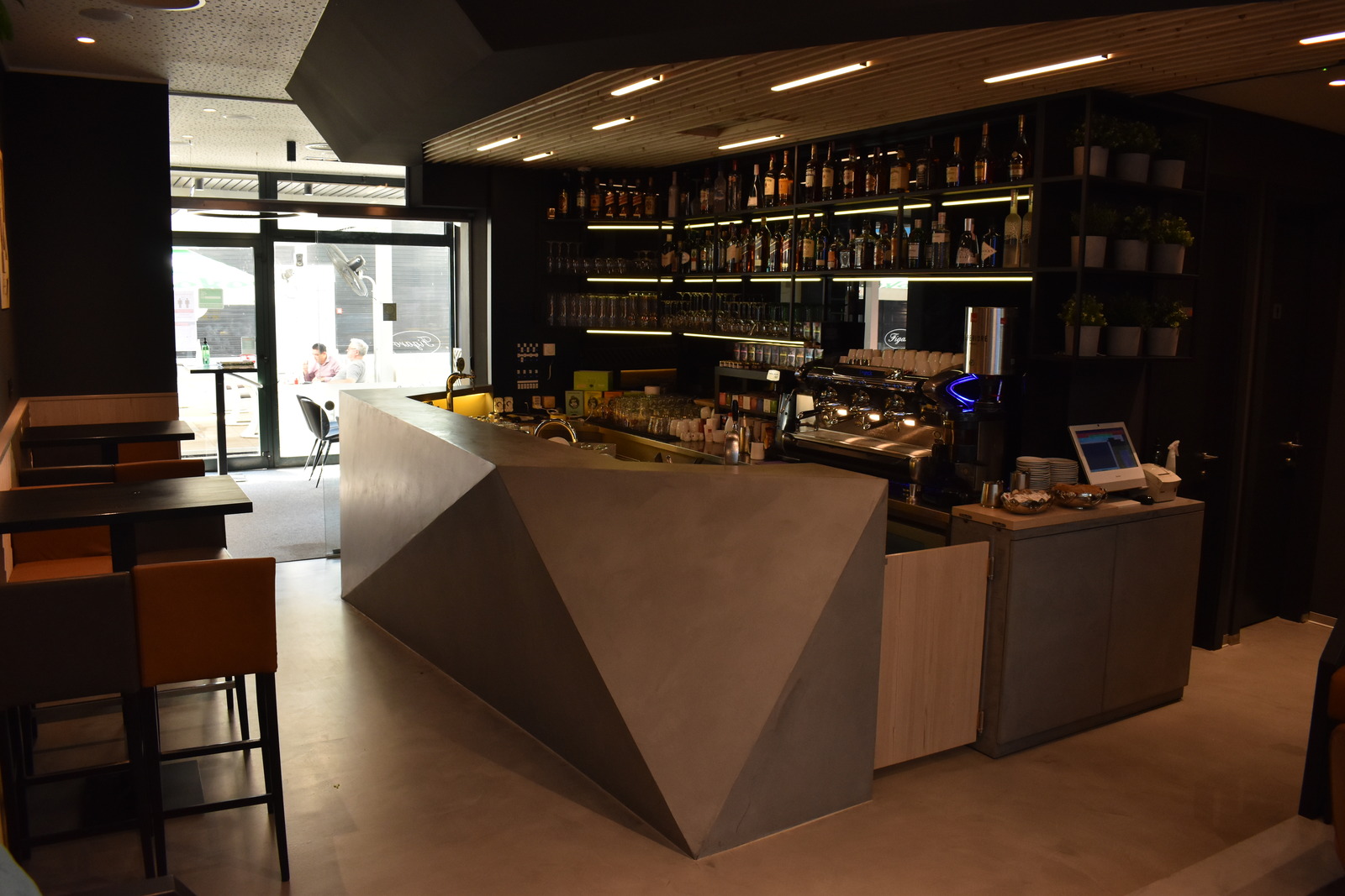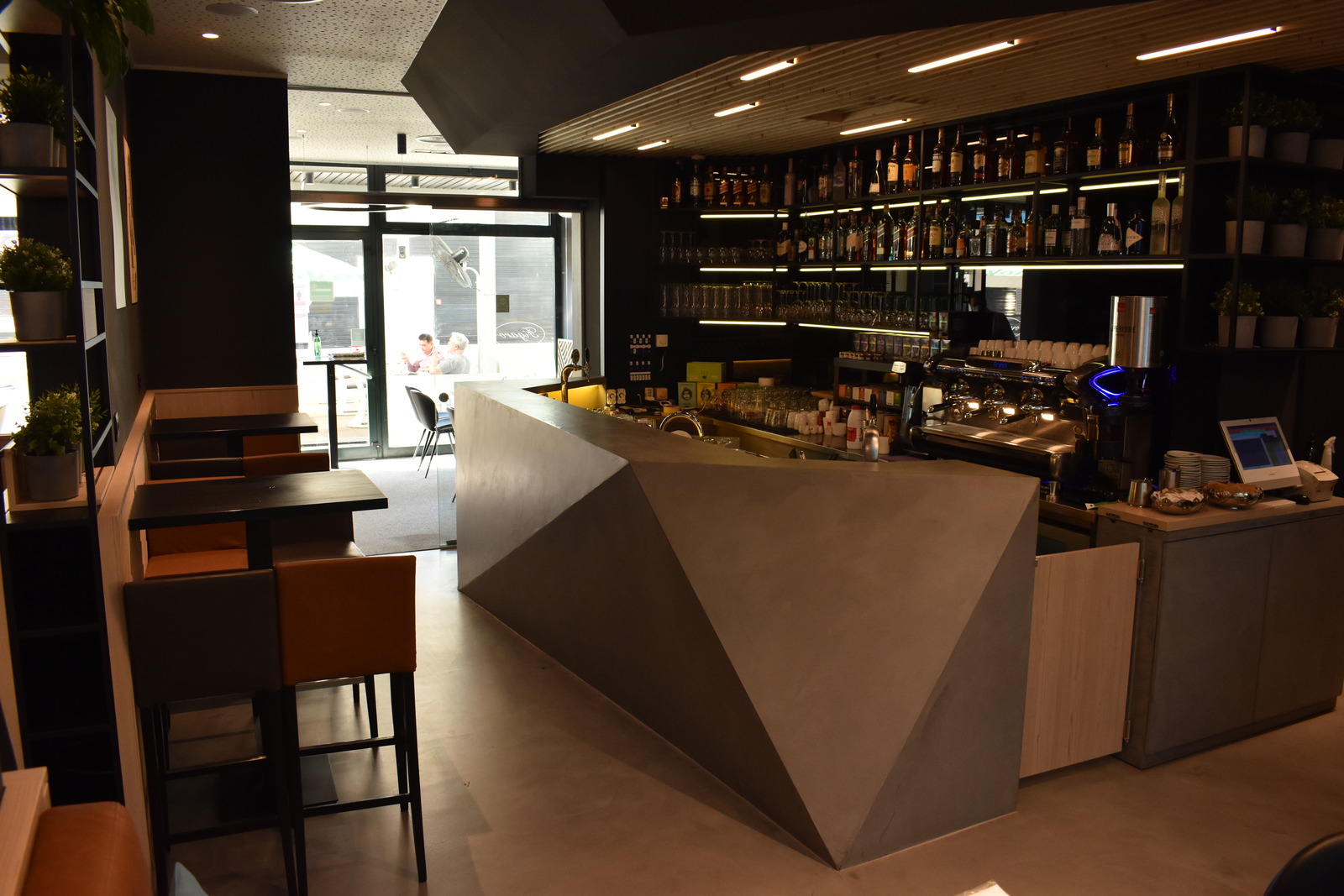 Odlučiti se na cjelovito preuređenje vrlo dobro posjećenog caffe bara, s namještajem kojem nitko nije imao prigovor na kvalitetu, bio je hrabar potez vlasnika. Dizajnom smo se odlučili približiti više mlađoj publici. To smo postigli komfornim uređenjem za grupno sjedenje. Osim toga, posebnost ovog modernog caffe bara zasigurno je i romboidni šank, obložen mikrocementnim premazom s metalnim konstrukcijama s letvicama koje djeluju impresivno.
