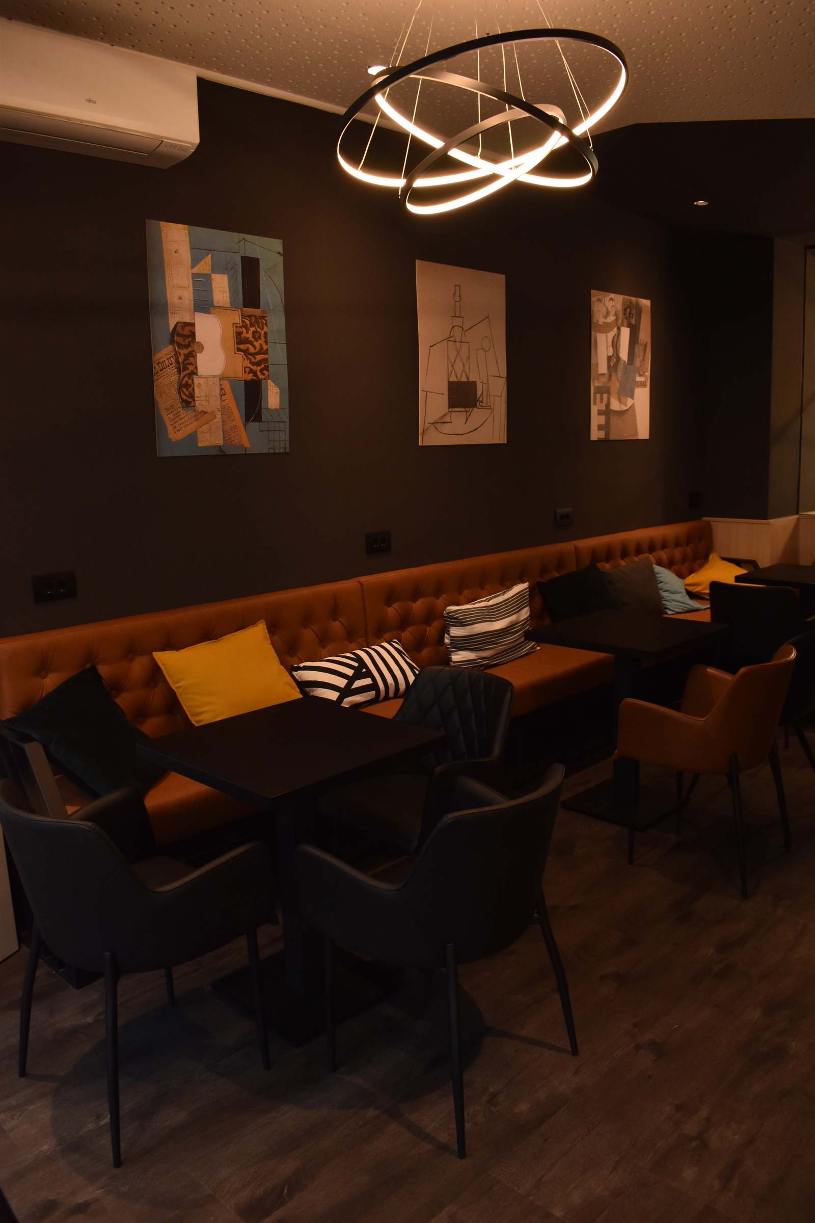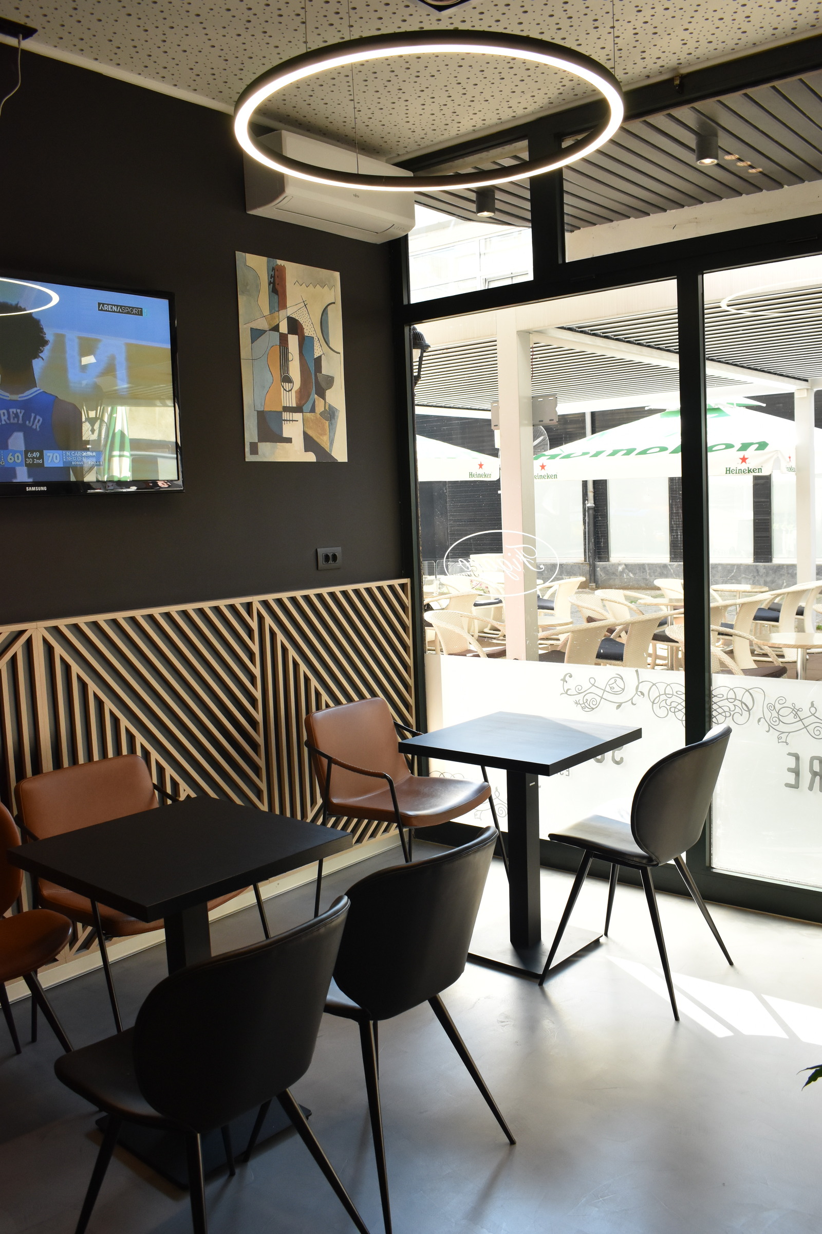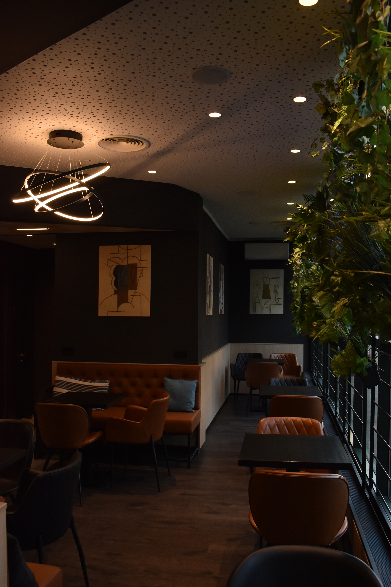 Odlučiti se na cjelovito preuređenje vrlo dobro posjećenog caffe bara, s namještajem kojem nitko nije imao prigovor na kvalitetu, bio je hrabar potez vlasnika. Dizajnom smo se odlučili približiti više mlađoj publici. To smo postigli komfornim uređenjem za grupno sjedenje. Osim toga, posebnost ovog modernog caffe bara zasigurno je i romboidni šank, obložen mikrocementnim premazom s metalnim konstrukcijama s letvicama koje djeluju impresivno.