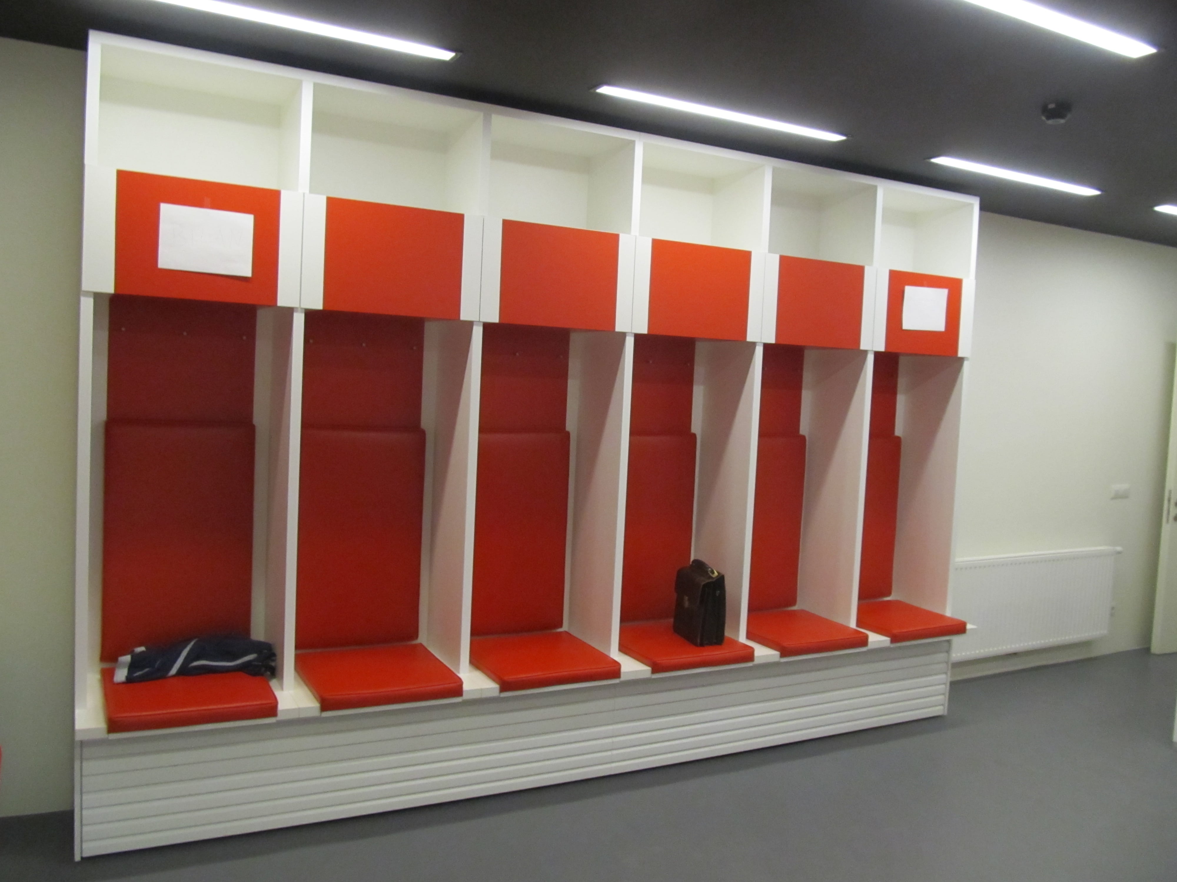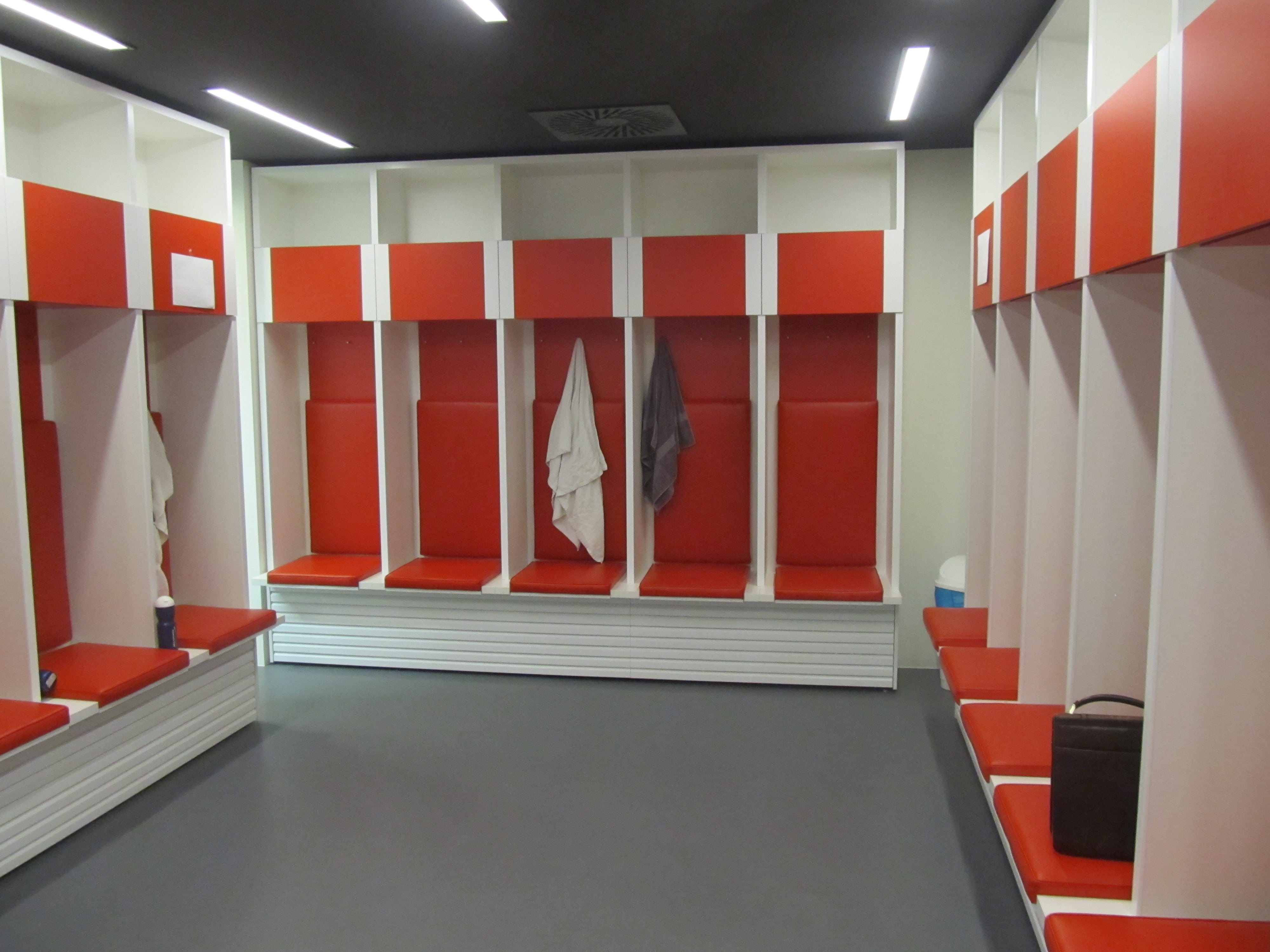 Unutar novootvorenog prostora KK Cedevita na Velesajmu opremili smo svlačionice, sobe za trenere i kafić namještajem po projektu. Klupe za igrače u svlačionici tapecirali smo u brodski, vodootporan sjaj, a sjedala smo izradili od spužve. Osim toga, svlačionicu smo opremili ormarićima s ladicama. Sobe za trenere opremili smo stolovima od šperploče, furnirano u hrast, ormarima izrađenim od crnog iverala te zidnim oblogama od iverala. Cijeli prostor je dizajniran u skladu s logom brenda Cedevite upravo zato prevladava narančasta boja.