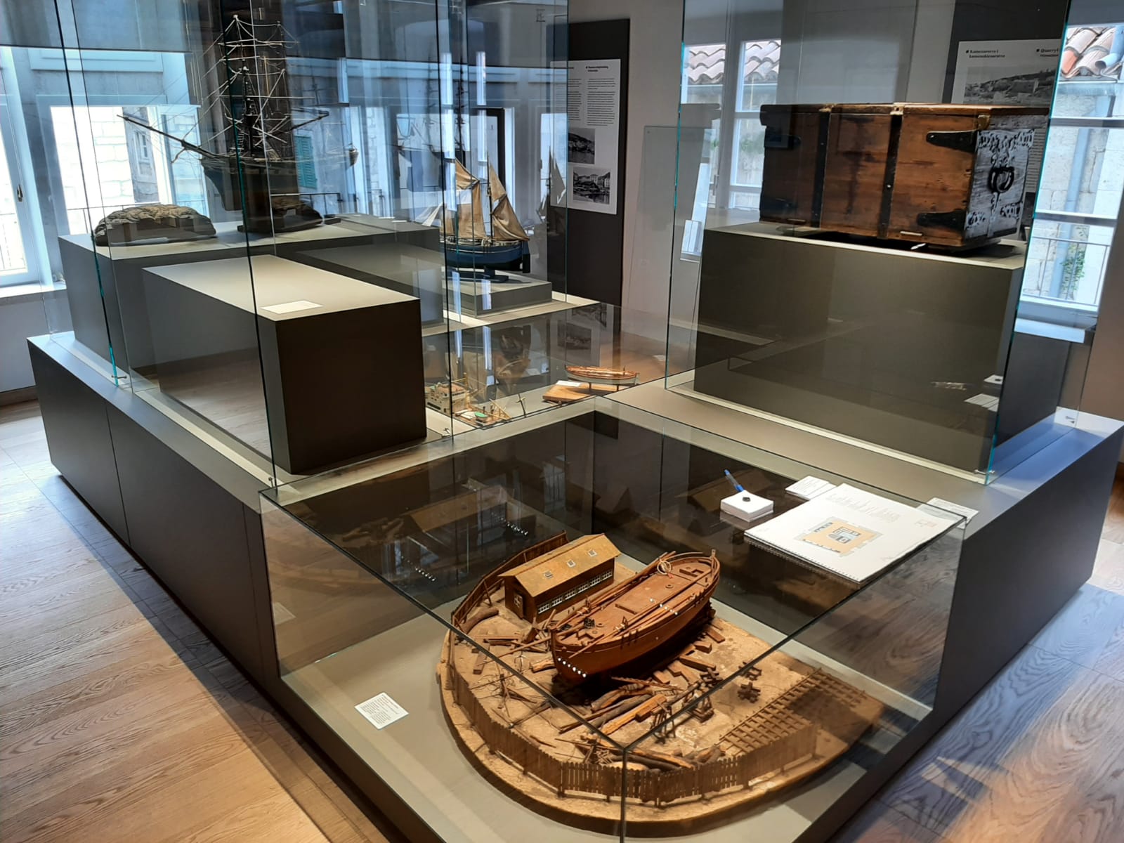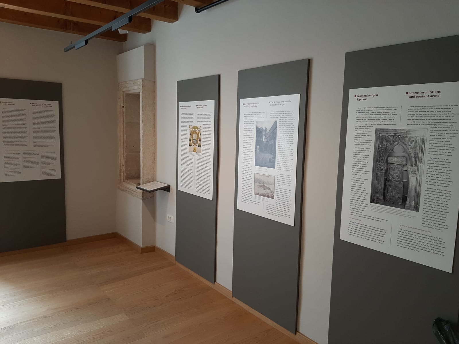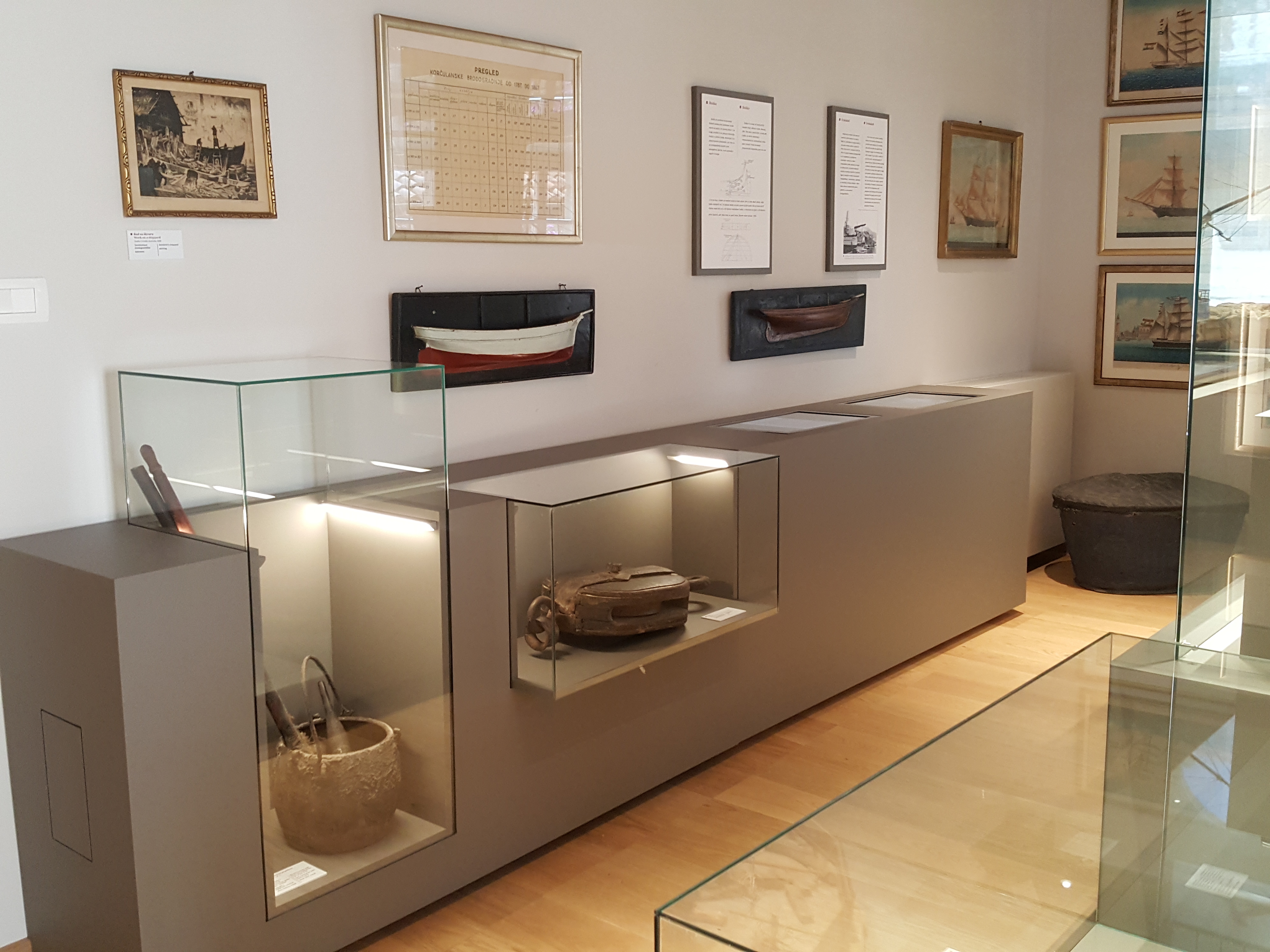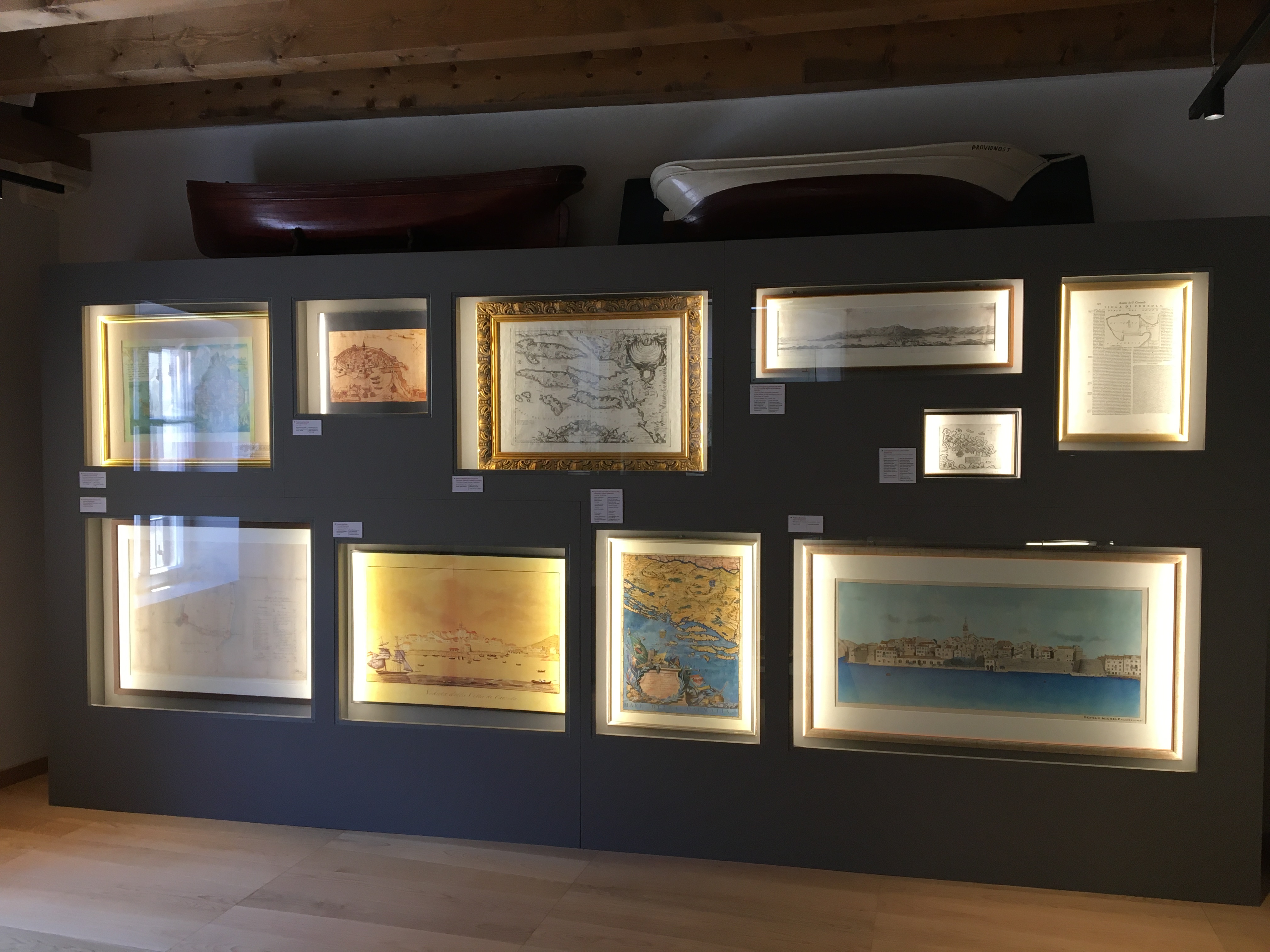 U srcu starog grada Korčule opremili smo Gradski muzej Korčula namještajem po projektu, obnovili stari te isporučili vjerne replike stolarskih elemenata. Zahtjevan arhitekonski projekt obuhvatio je razne arhivske ormare, recepciju, staklenu ogradu, vremensku lentu i izložbene vitrine osvjetljene led rasvjetom. Proizveli smo maketu grada s 22 bitne građevine u suradnji s povjesničarkama umjetnosti. Maketa otoka napravljena je 3D printanjem pomoću kamenog filamenta. More je napravljeno slojevitim izljevanjem tonirane epoksidne smole. Vrlo vrijednu povijesnu građu čine grbovi, karte, mačevi, makete starih brodova, prigodna odjeća i amfore koje smo postavili na čelična postolja. Amfore su izložene na čeličnim postoljima u obliku trnonošca koje smo fiksirali u živu stijenu. Izložak starih ulaznih vrata palače Ismaeli replicirali smo koristeći CNC tehnologiju na pločama MDF-a. Osim toga, napravili smo skoro nevidljive nosače od prozirnog plexiglasa kako bi mačevi u vitrinama stajali okomito i posjetiteljima djelovali kao da lebde u zraku. Izradili smo i specijalne podesive čelične nosače kako bi teški kameni grbovi mogli stajati ,,u zraku''. Vrlo vrijednu povijesnu građu čine grbovi, karte, mačevi, makete starih brodova, prigodna odjeća i amfore koje smo postavili na čelična postolja.