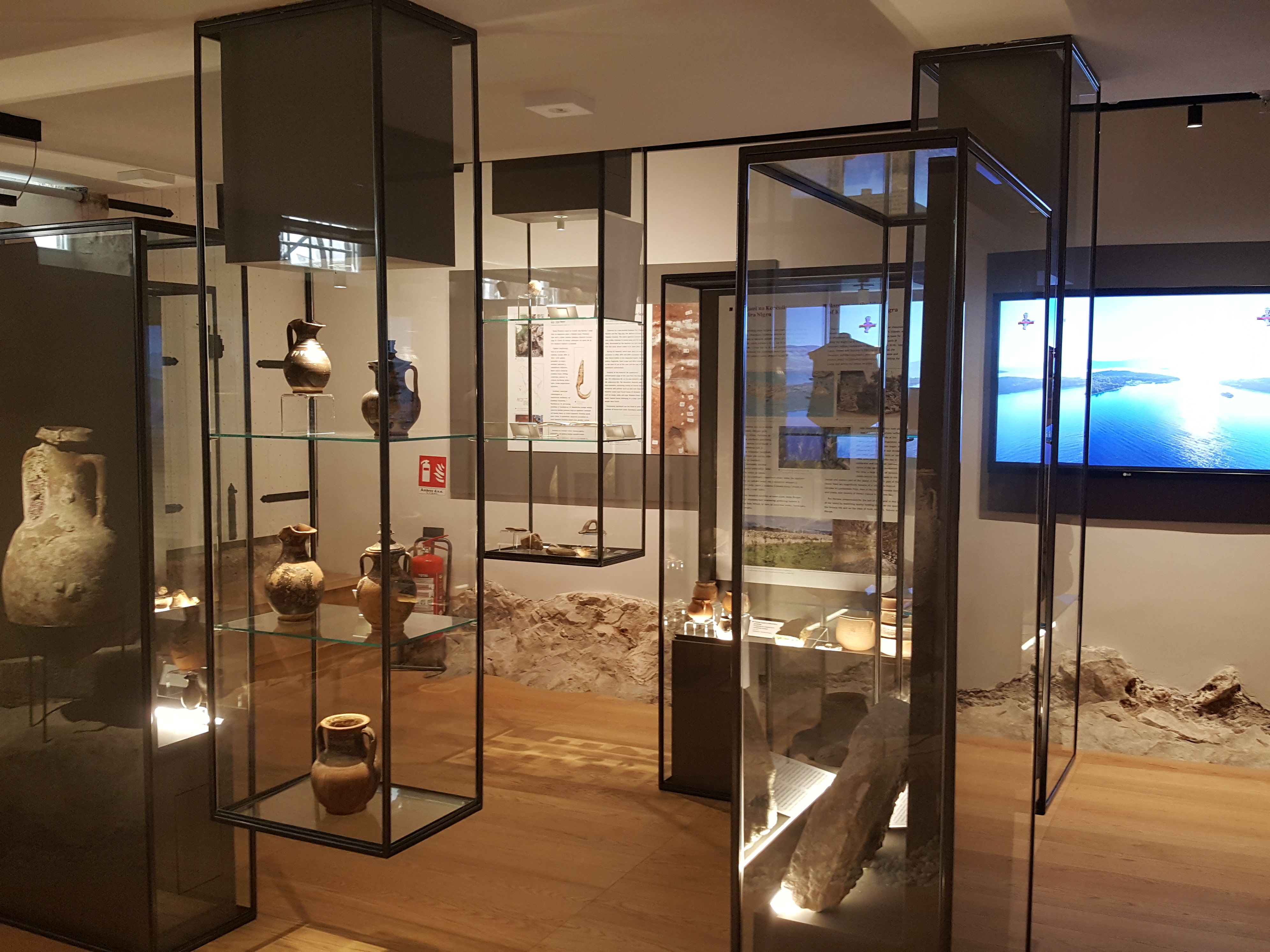 U srcu starog grada Korčule opremili smo Gradski muzej Korčula namještajem po projektu, obnovili stari te isporučili vjerne replike stolarskih elemenata. Zahtjevan arhitekonski projekt obuhvatio je razne arhivske ormare, recepciju, staklenu ogradu, vremensku lentu i izložbene vitrine osvjetljene led rasvjetom. Proizveli smo maketu grada s 22 bitne građevine u suradnji s povjesničarkama umjetnosti. Maketa otoka napravljena je 3D printanjem pomoću kamenog filamenta. More je napravljeno slojevitim izljevanjem tonirane epoksidne smole. Vrlo vrijednu povijesnu građu čine grbovi, karte, mačevi, makete starih brodova, prigodna odjeća i amfore koje smo postavili na čelična postolja. Amfore su izložene na čeličnim postoljima u obliku trnonošca koje smo fiksirali u živu stijenu. Izložak starih ulaznih vrata palače Ismaeli replicirali smo koristeći CNC tehnologiju na pločama MDF-a. Osim toga, napravili smo skoro nevidljive nosače od prozirnog plexiglasa kako bi mačevi u vitrinama stajali okomito i posjetiteljima djelovali kao da lebde u zraku. Izradili smo i specijalne podesive čelične nosače kako bi teški kameni grbovi mogli stajati ,,u zraku''. Vrlo vrijednu povijesnu građu čine grbovi, karte, mačevi, makete starih brodova, prigodna odjeća i amfore koje smo postavili na čelična postolja.
